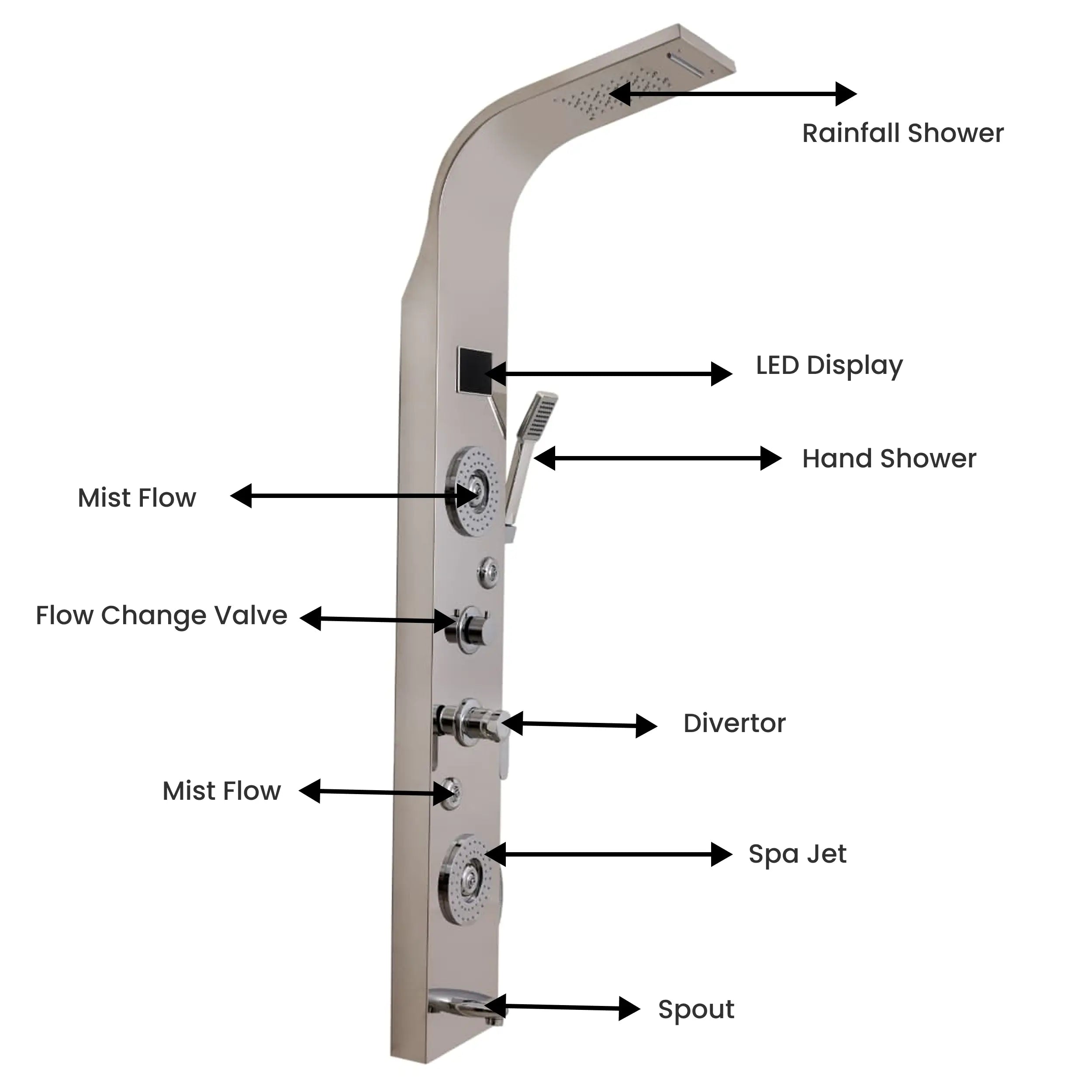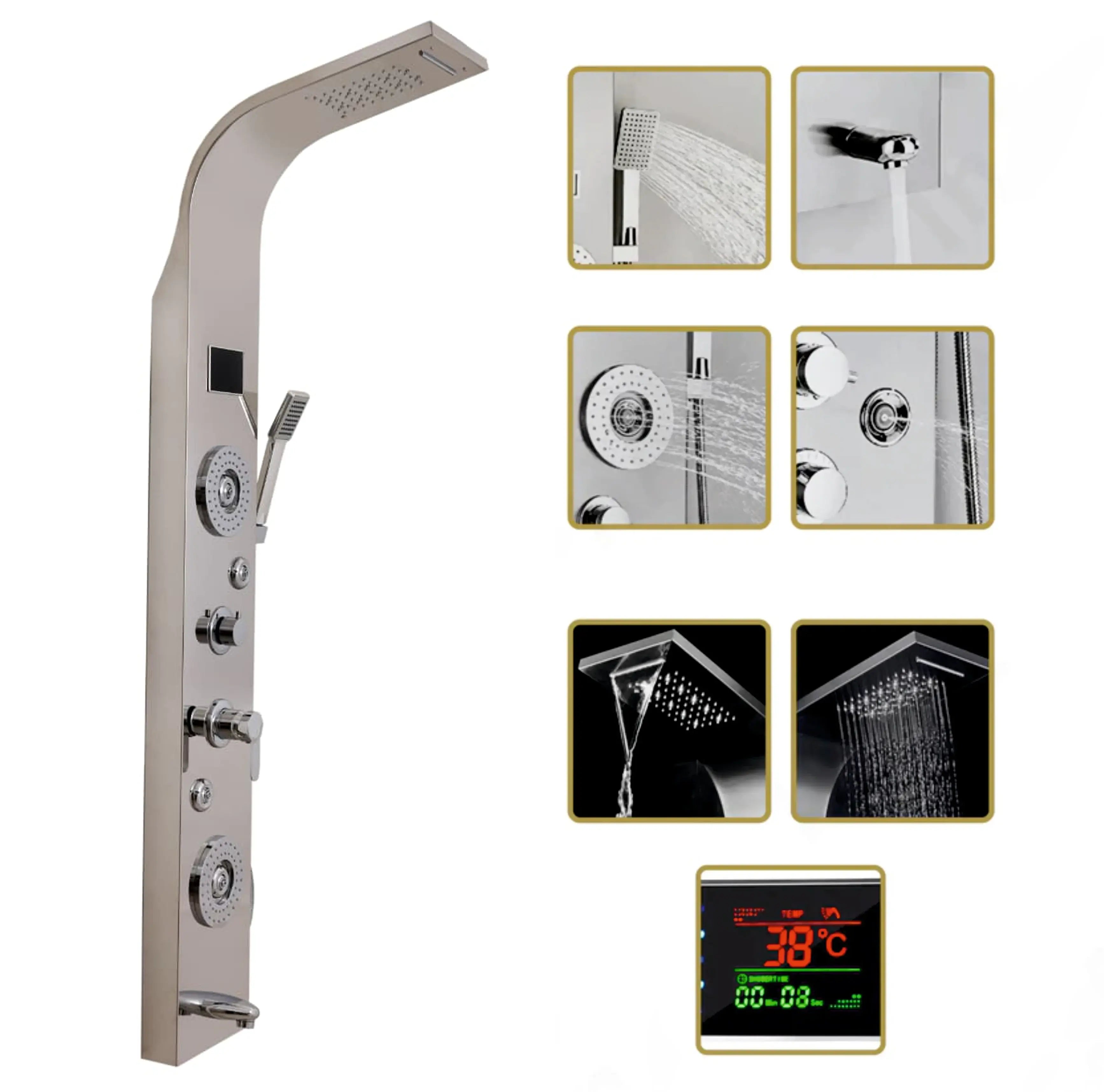 6 Function Shower Panel with Display (Silver) by Alfahome