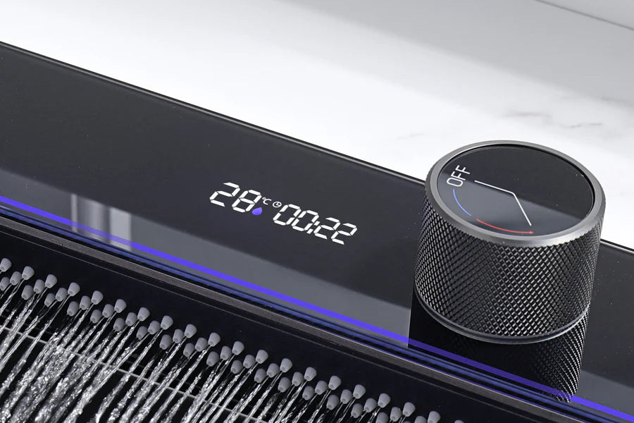 Tempered glass surface. Real-time digital temperature display and LED lighting without batteries. Clean efficiently at the perfect temperature.